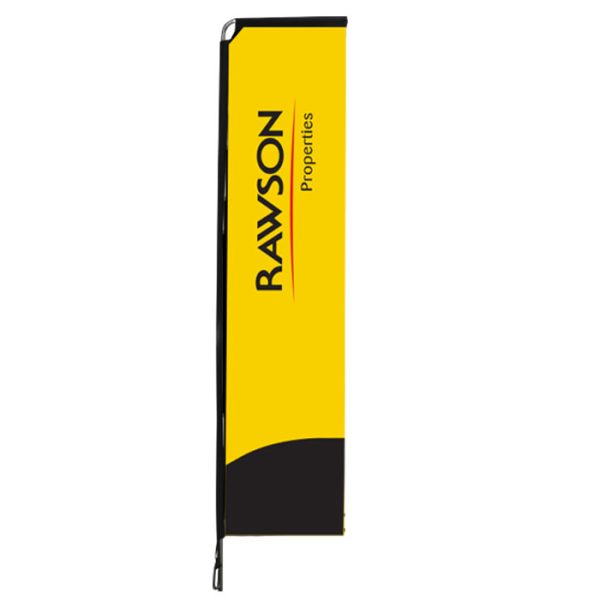 Telescopic banner printing; Attract attention with from afar with the Rectangle Flag. Available in three sizes ranging from 1.7m to 3.7m in print height. The Rectangle flag design allows for a larger graphic area to portray your brand or promotional message. Print width is 700mm for all three flags.